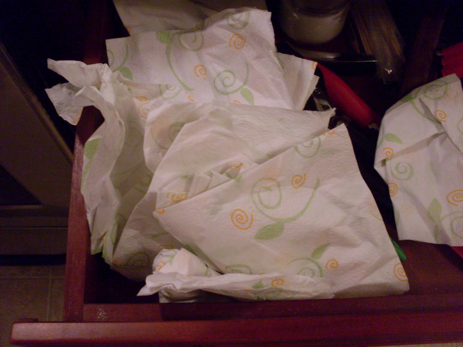 10:00 p.m. last night I was unloading the dish washer and this is what I found. They burst right out of the drawer like confetti out of those little 4th of July popper things.